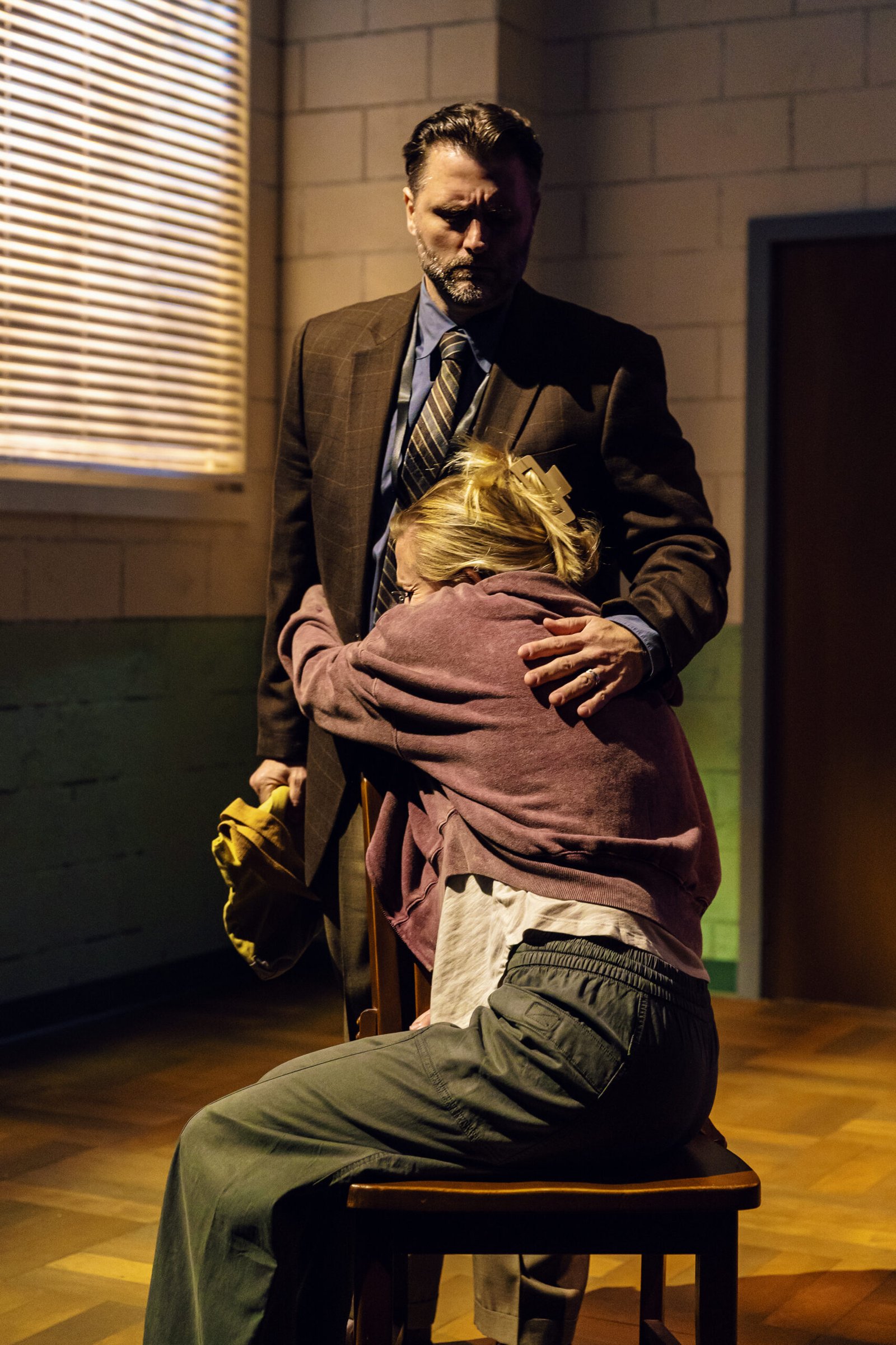 Faye and Matt Stabile—who sympathetically plays Paul, an educator nicknamed “Cool Mr. P.”—are the only cast members portraying a single character. The others—Jessica Farr, Bruce Linser, and Maha McCain—deftly shift between roles, playing everyone from social workers to other parents, educators, and police officers. In addition, behind-the-scenes artists help bring the world of the play realistically to life. They include scenic designer Samantha Pollack, costume designer Brian O’Keefe, lighting designer Dylan B. Carter, sound designer Roger Arnold, and projection designer Adam J. Thompson.