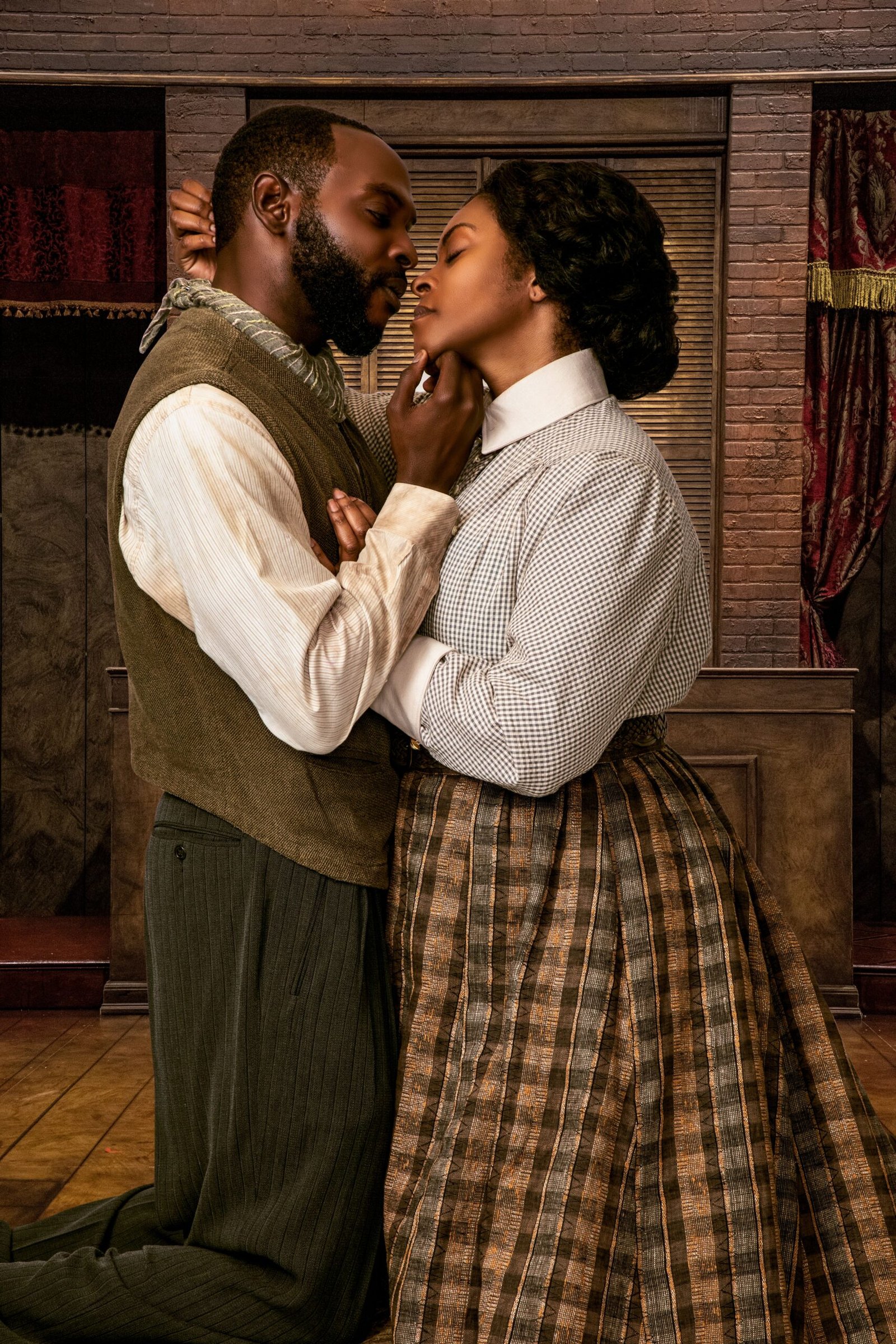 George Armstrong (Jovon Jacobs) and Esther Mills Armstrong (Rita Cole) share an intimate moment in Palm Beach Dramaworks’ current production of Intimate Apparel.